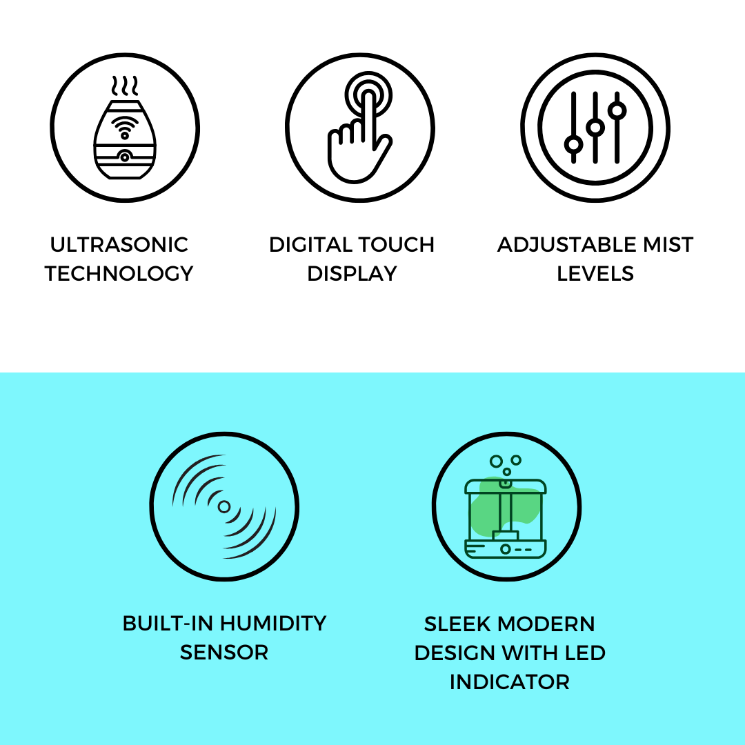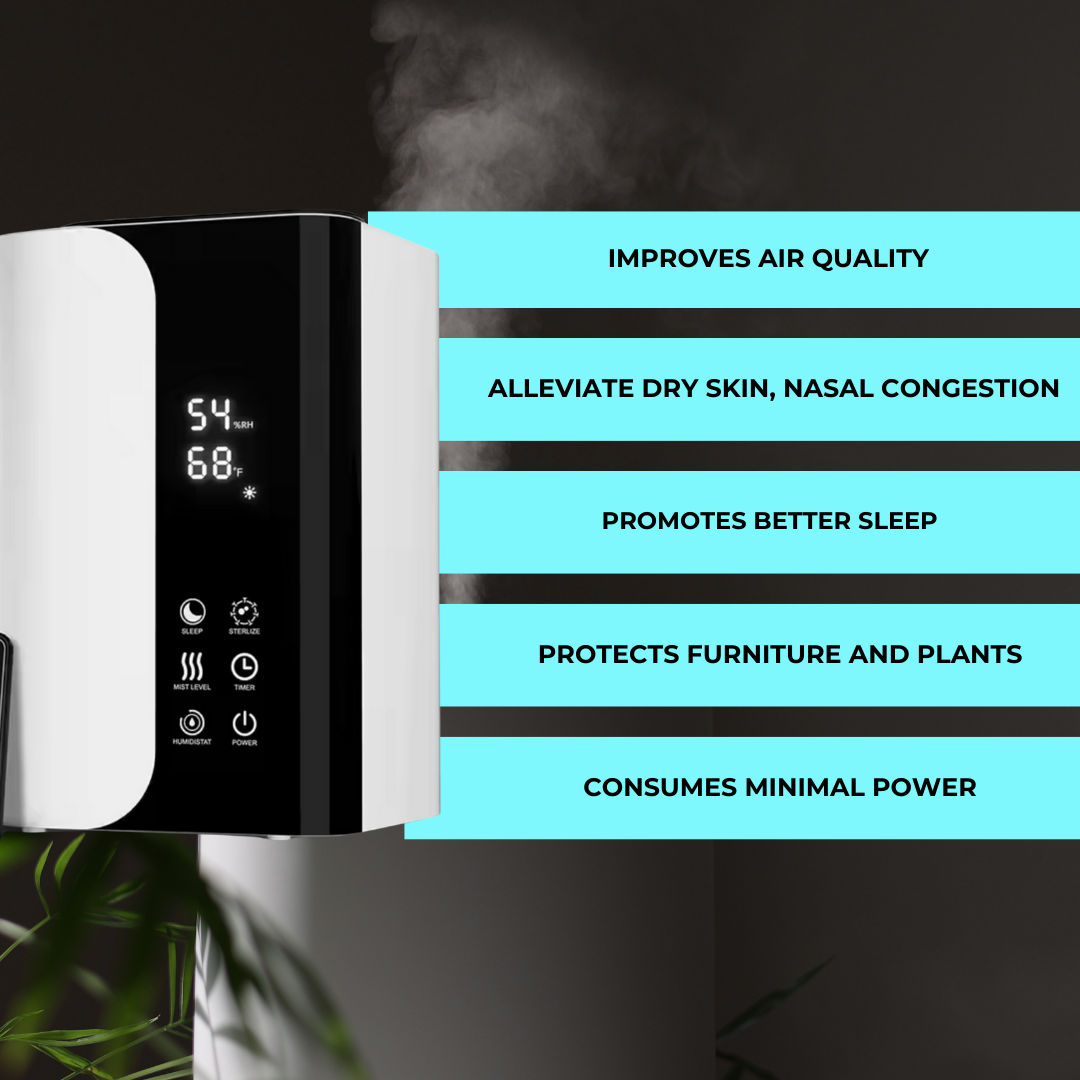 - Förbättrar luftkvaliteten : Tillför viktig fukt för att bekämpa torrhet, minska hudirritation och andningsproblem.