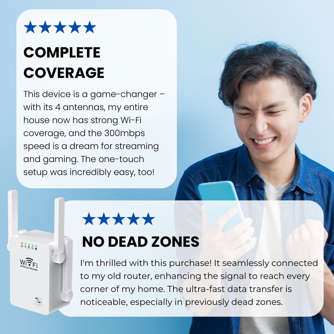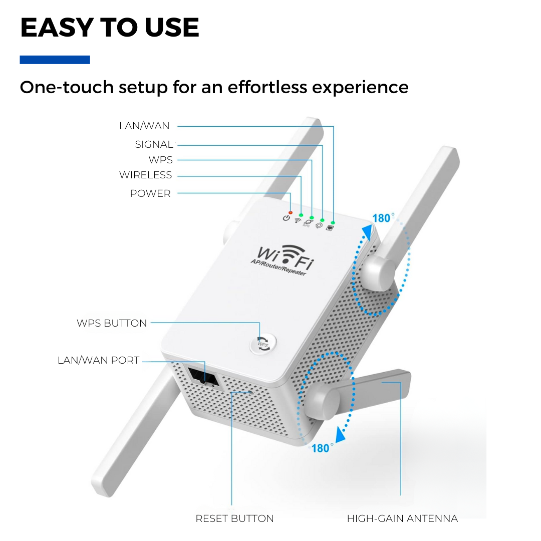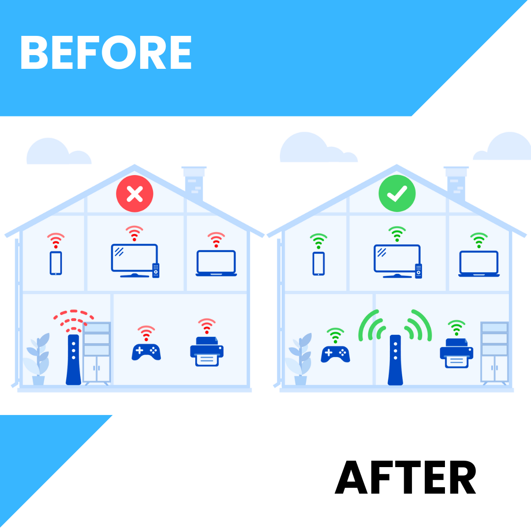 - Utökad WiFi-täckning: Eliminerar döda zoner genom att förlänga din befintliga WiFi-signal för omfattande täckning.