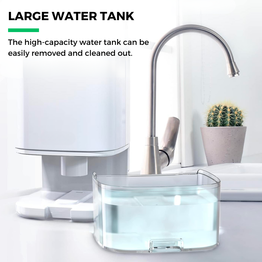 - Grote Watertank: Royale capaciteit voor langdurig gebruik zonder frequent legen, waardoor onderhoud wordt verminderd.