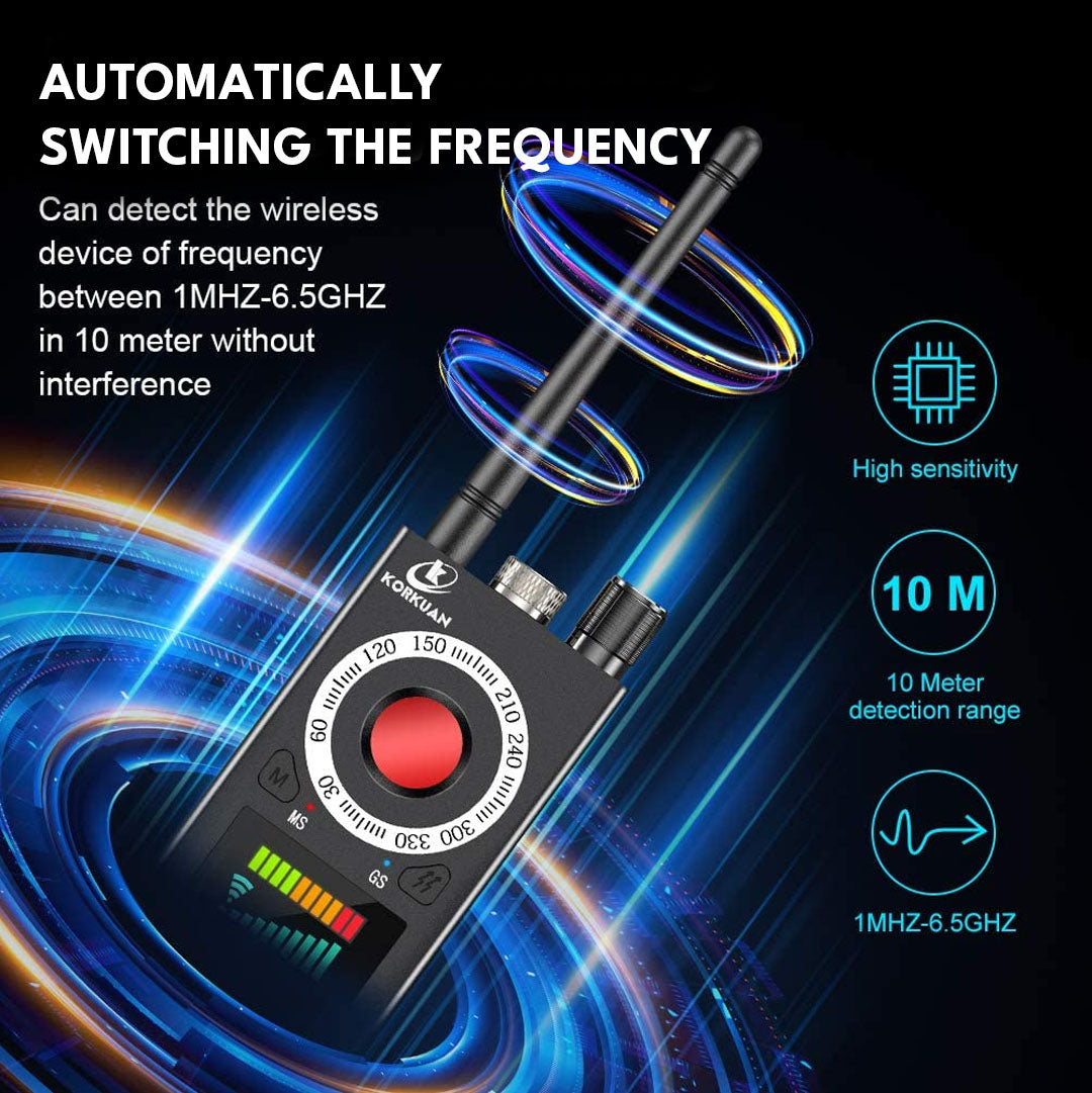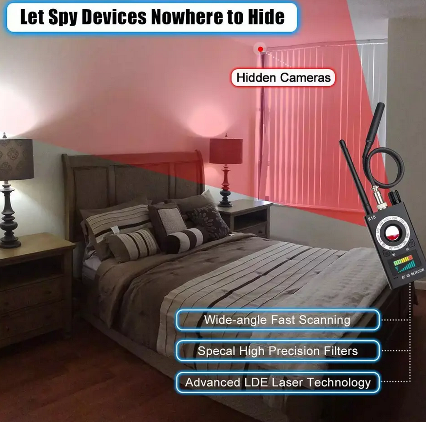 - Omfattande Detektion: Upptäcker dolda kameror, avlyssningsenheter och andra spionverktyg genom att skanna ett brett spektrum av frekvenser och signaler.